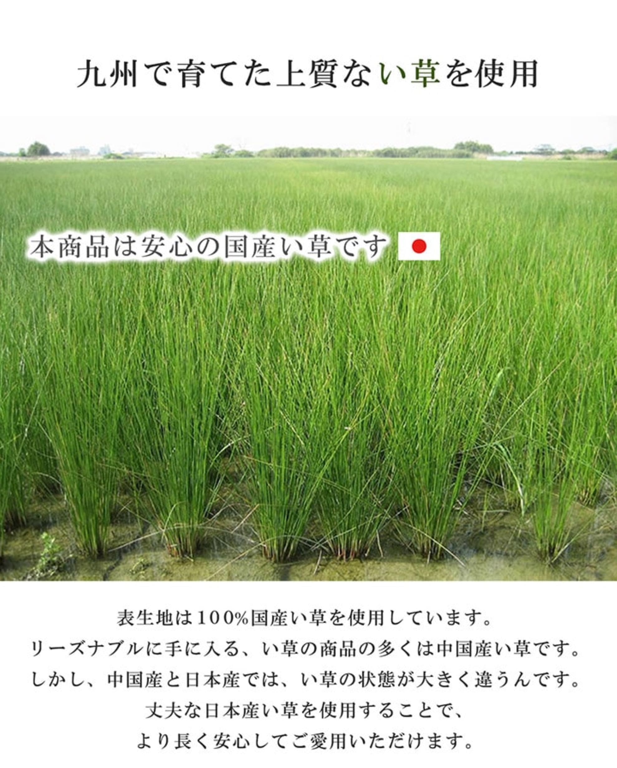 - 国産(九州産)のしなやかない草を使用していますので柔らかく、すべすべした肌触りです。
